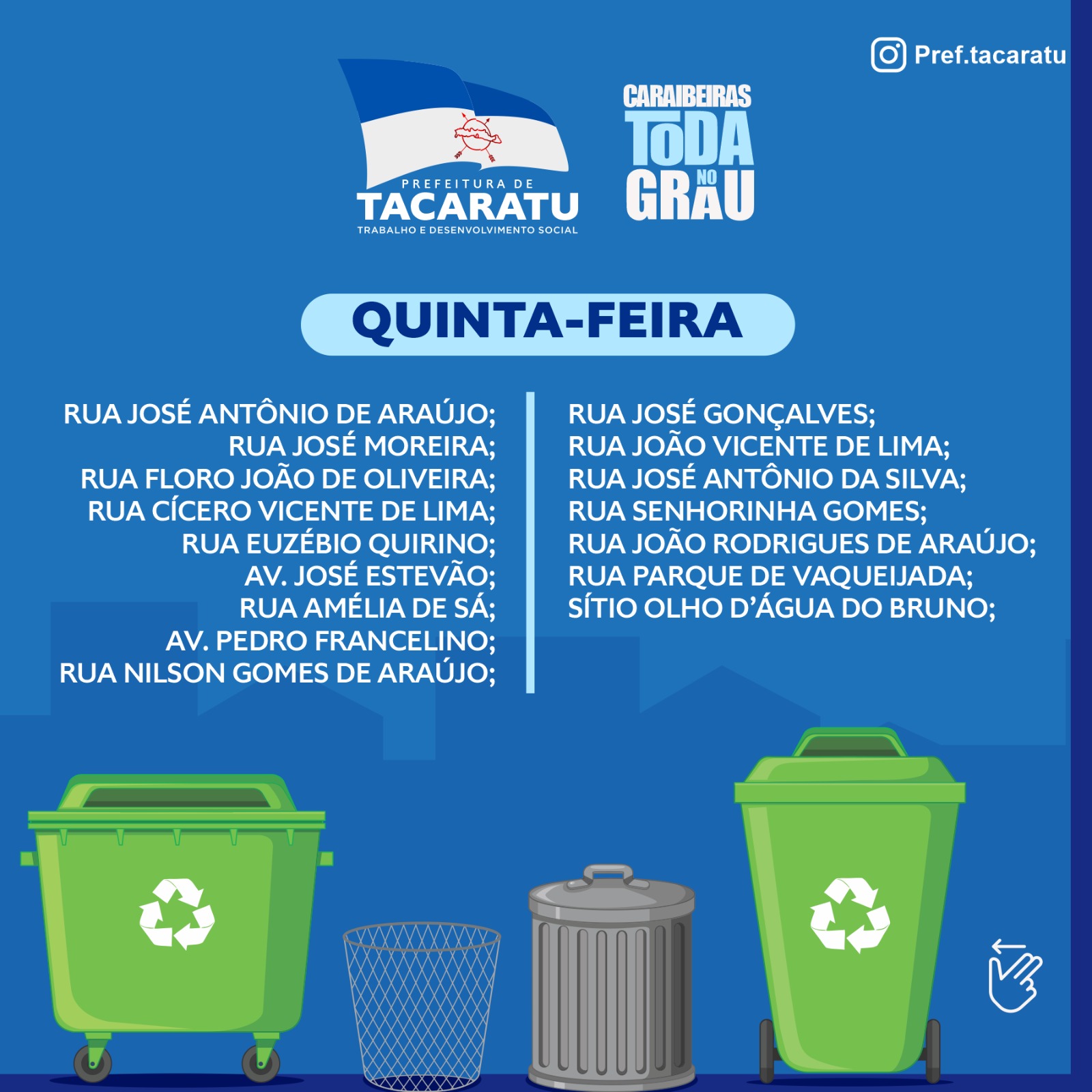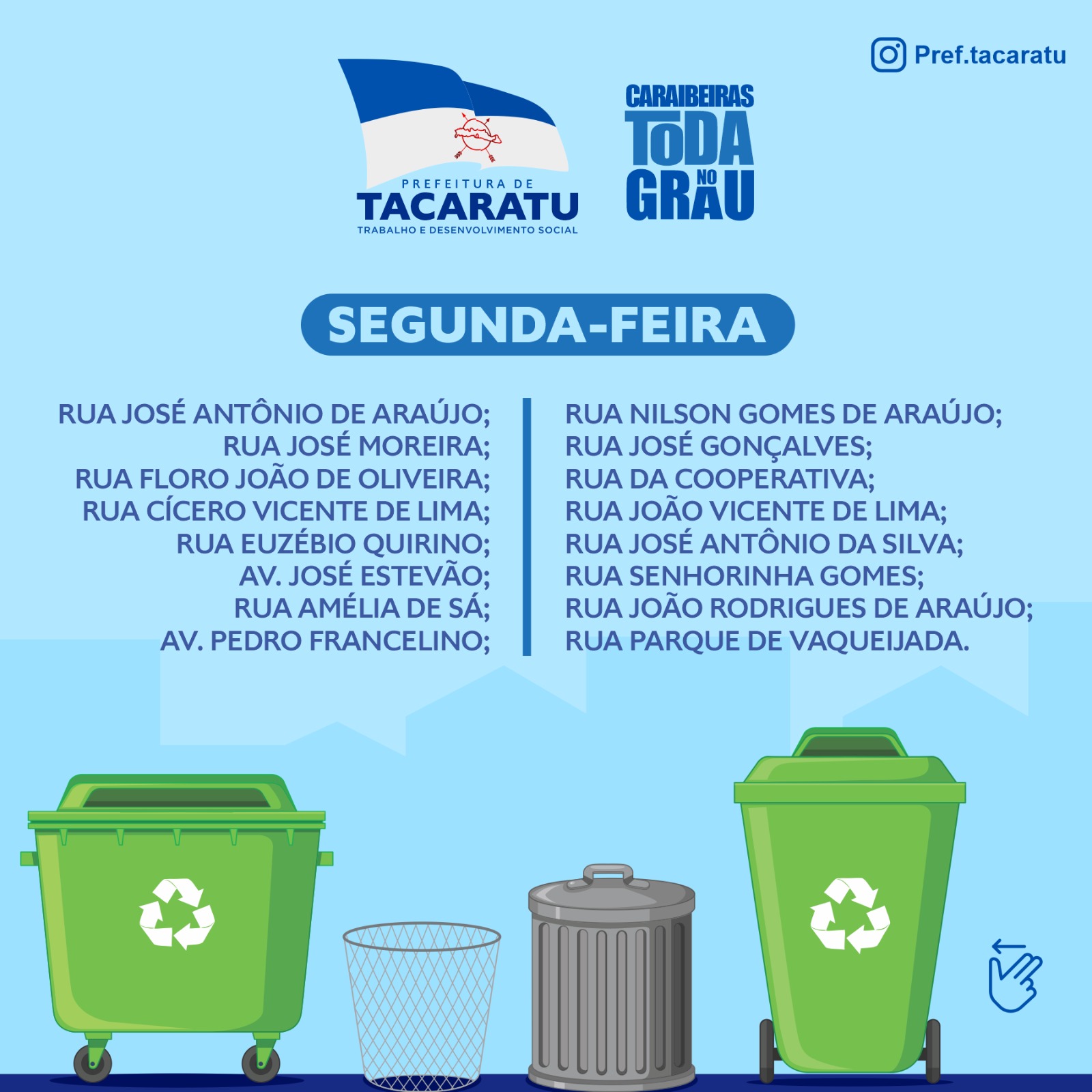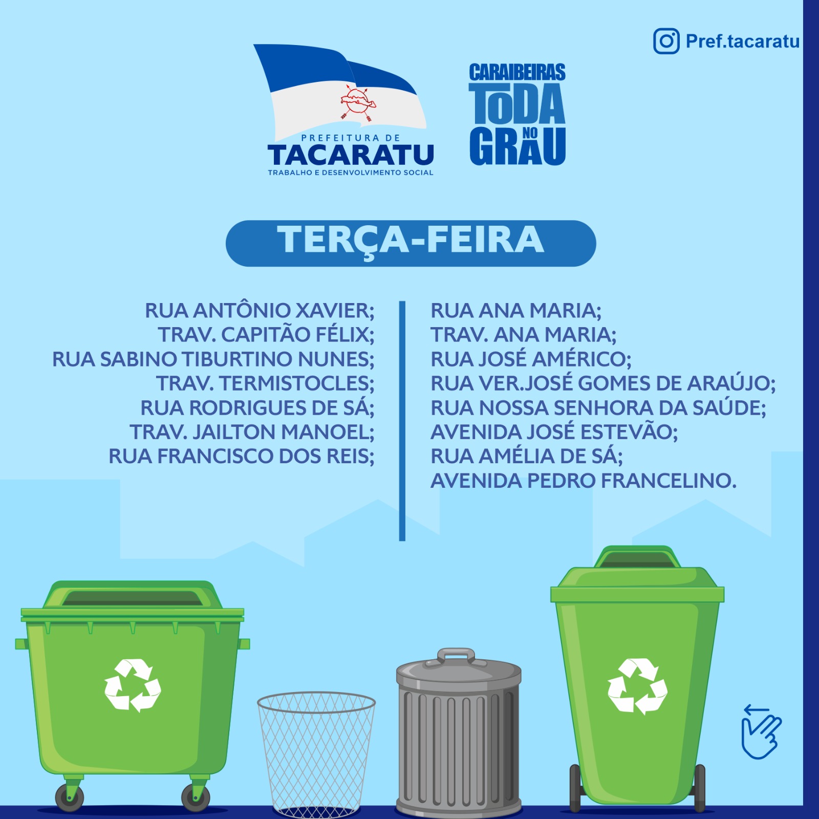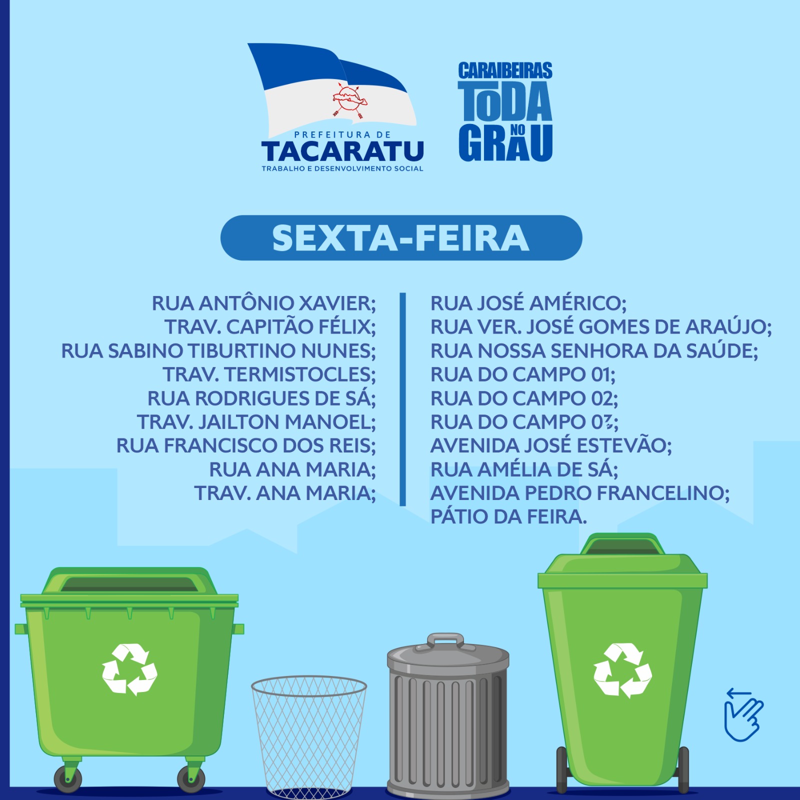 PROGRMAÇÃO ATUALIZADA DA COLETA DE LIXO EM CARAIBEIRAS.