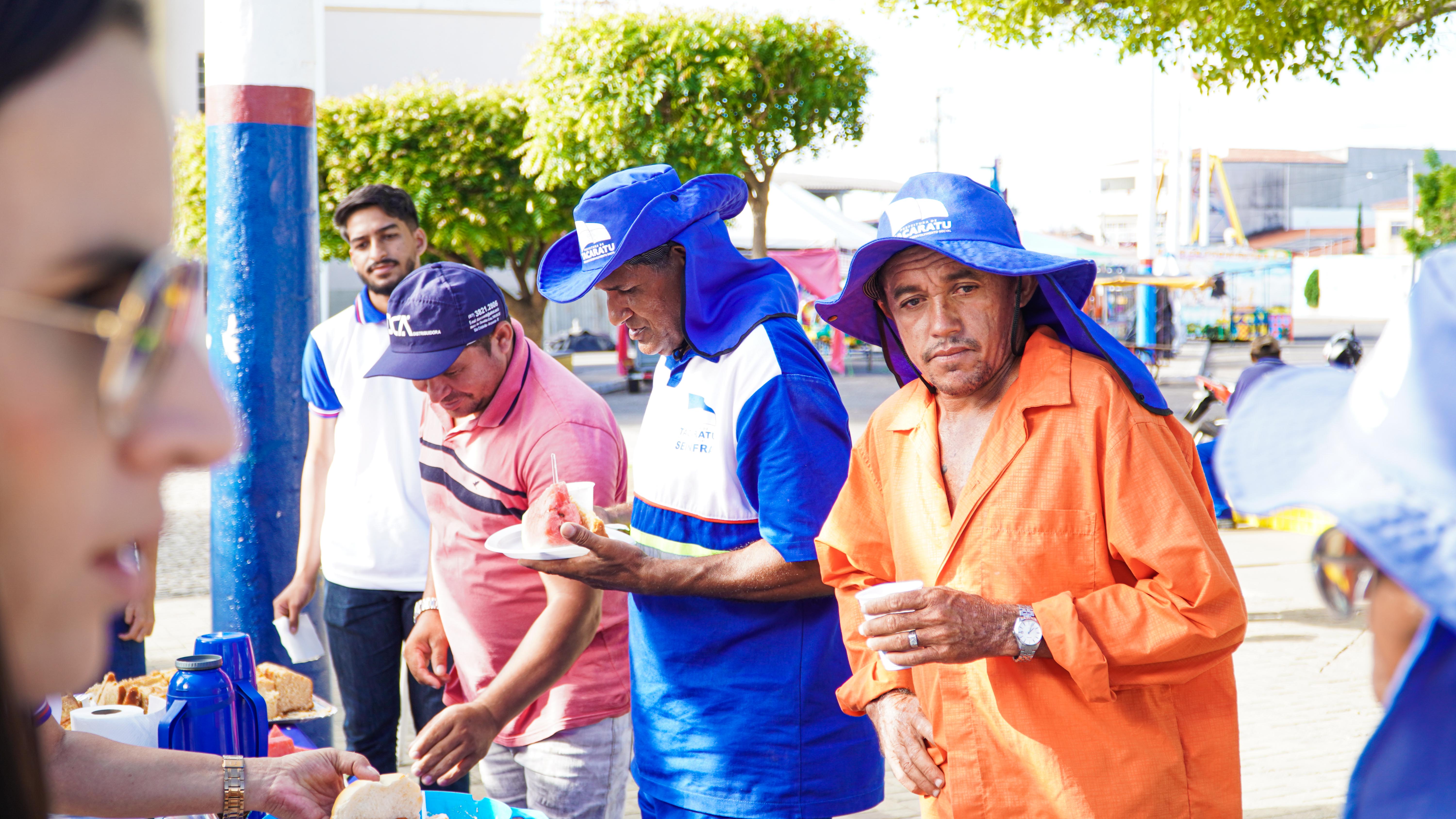 A Secretaria de Desenvolvimento Social e Direitos Humanos realizou um café da manhã para os profissionais de limpeza urbana, que contribuíram com dedicação durante toda a festa da Santa Cruz.